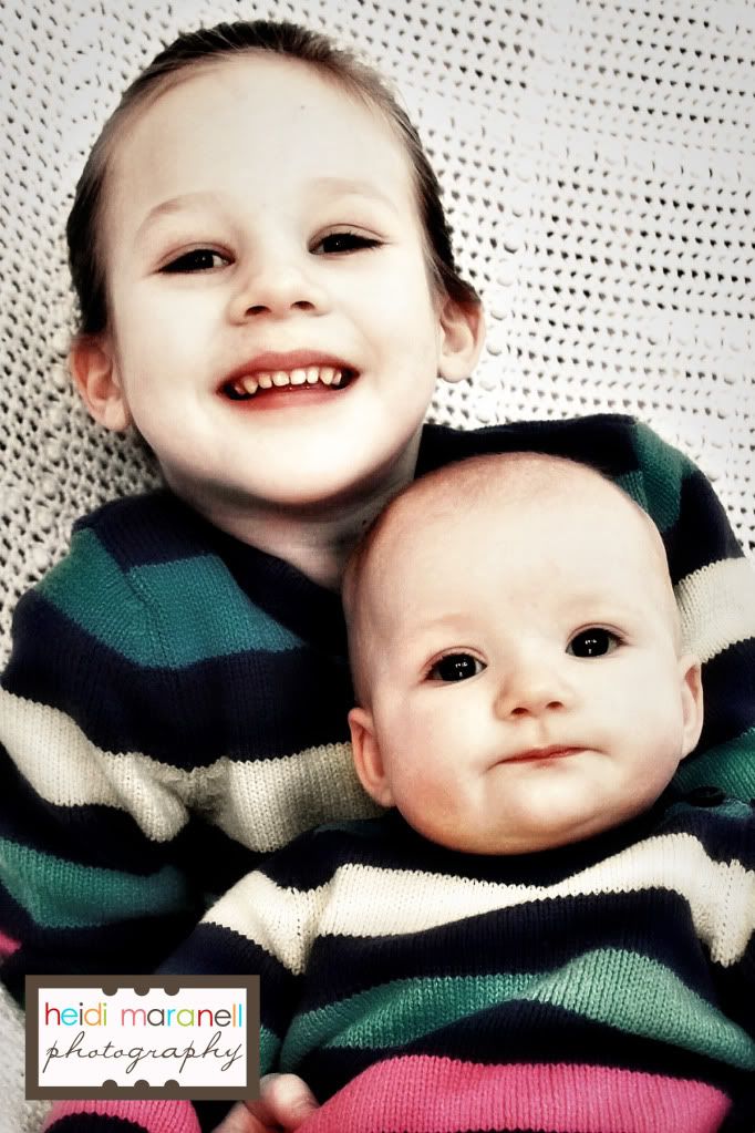 Here are some more pictures of Delaney at 6 months. And how could I resist some of the sisters in their matching sweaters? I probably won't be able to dress them alike for very long since it will become "uncool" (is that a word?) to my very hip 5 year old. But for now I'll enjoy it.