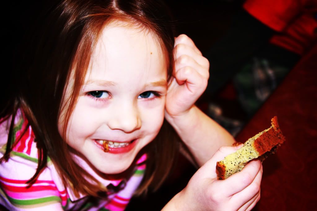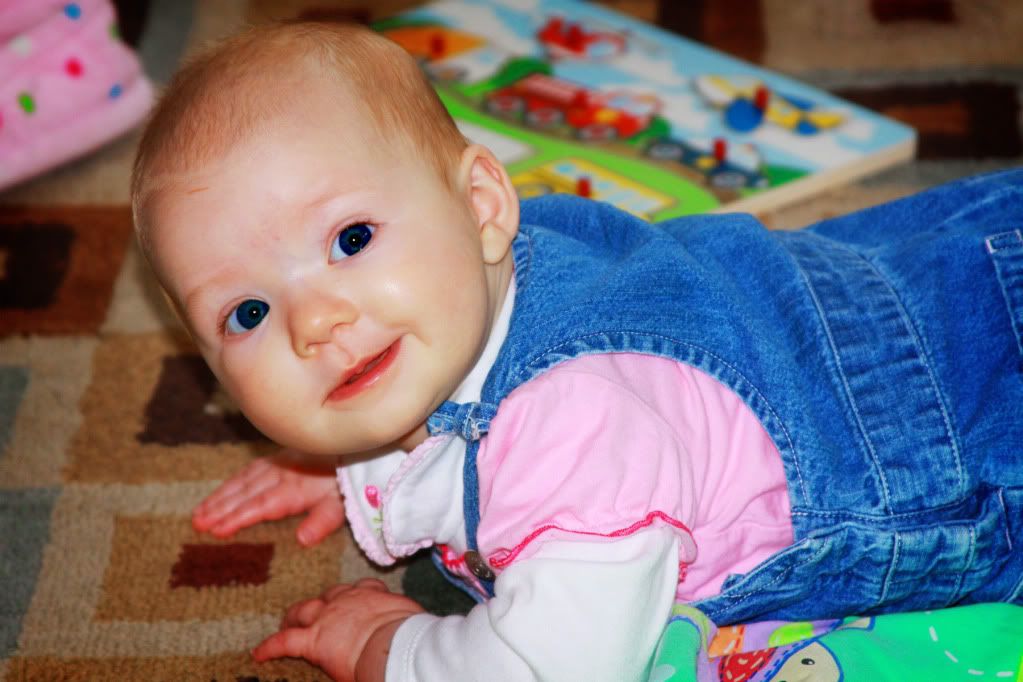 Some days smiles all around are hard to come by. But not this particular day! Everyone was enjoying Grammy's poppyseed bread. What's not to smile about?? Delaney, of course, just smiled away because she could freely kick her legs and had mastered the art of rolling over. Enjoy!